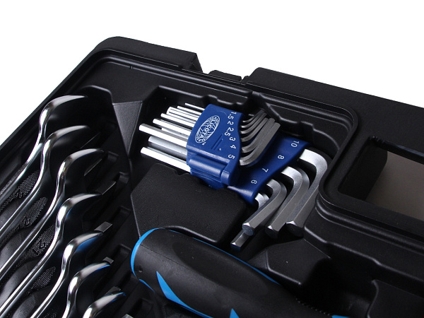 В наборе 16 ключей с рожковой и накидной частью.