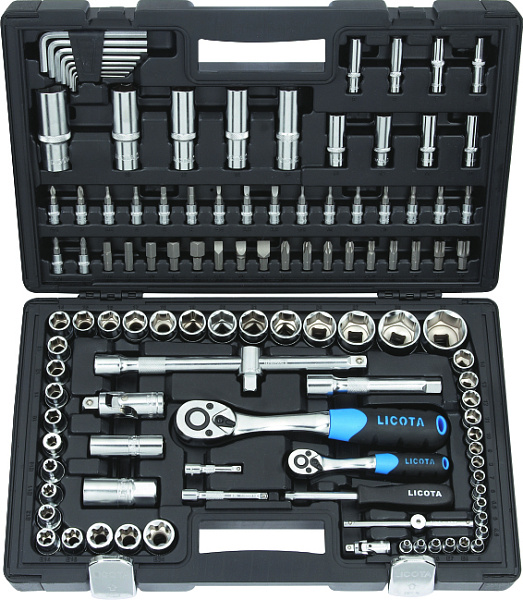 В набор входит широкий спектр стандартных, глубоких и свечных головок, головок с E-профилем на ¼” и ½” , бит 5/16”, головок со вставками, а также аксессуаров к ним - воротки, удлинители и кардан.