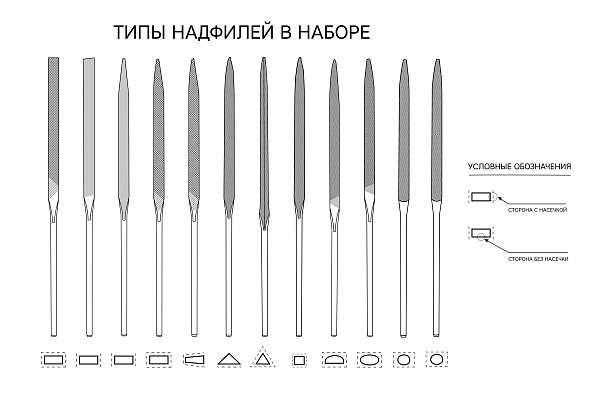 Надфиль плоский тупоносый, четырехсторонняя насечка - 1