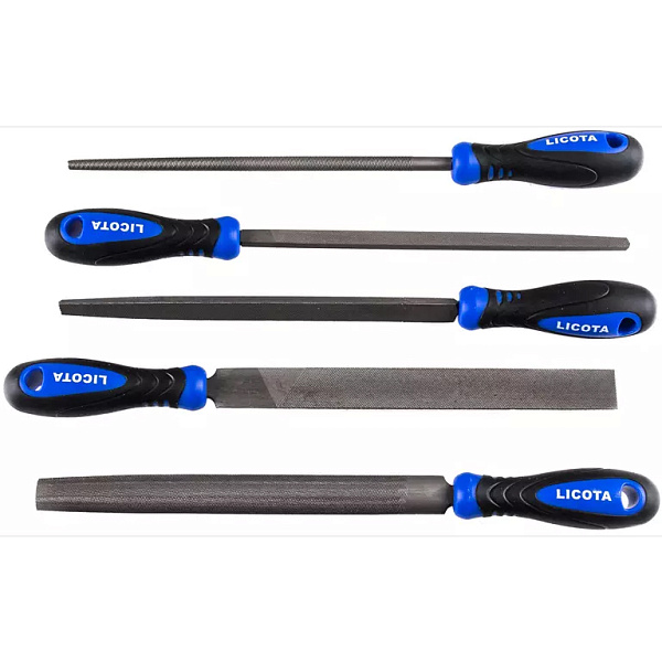 В набор входят плоский, круглый, полукруглый, трёхгранный и квадратный напильники. Инструменты позволяют обработать деталь любой формы.