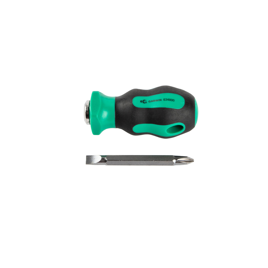 Отвертка короткая переставная GARWIN PRO 634800 с двусторонним стержнем с двумя рабочими профилями.