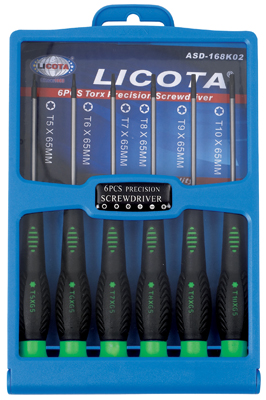 Набор отверток для точной механики Licota ASD-168K02. Комплект из 6 предметов. Рабочий профиль - Torx. Длина жал - 65 мм.