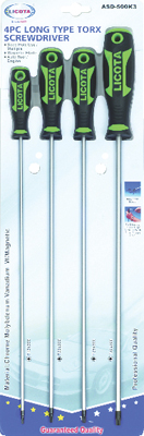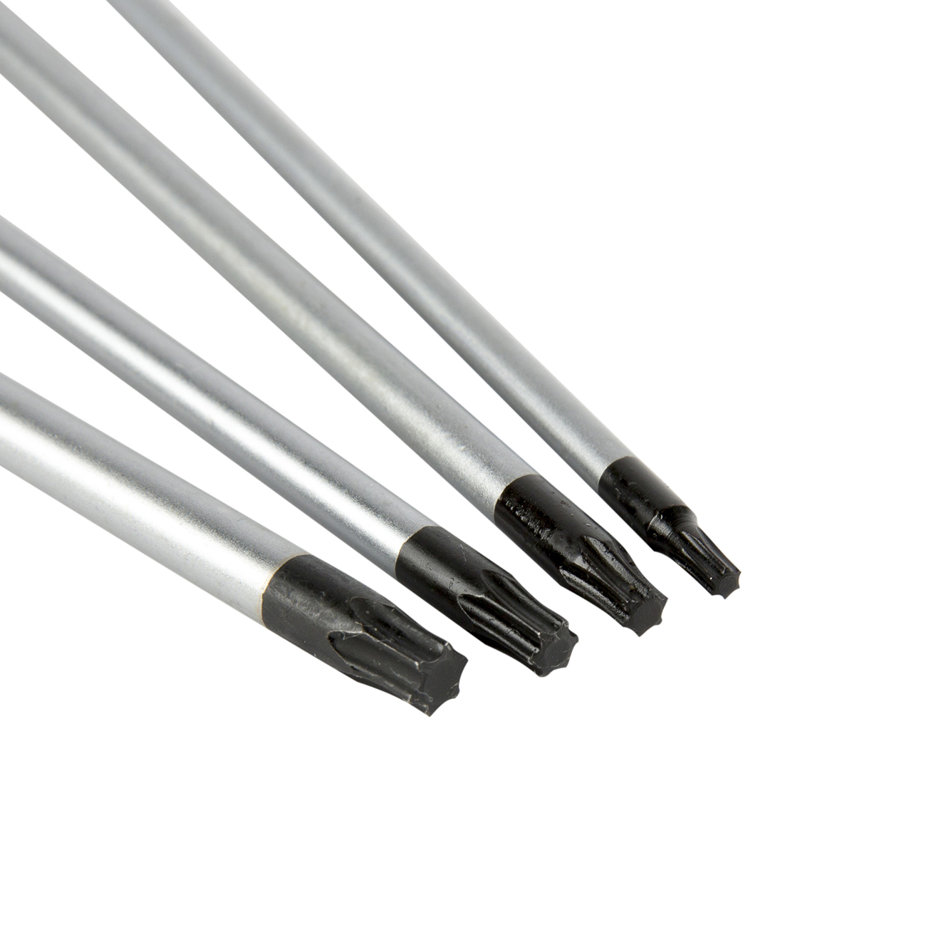 Набор длинных отверток Licota ASD-500K3 с рабочим профилем Torx. В комплект входят 4 отвертки с длиной жала 300 мм.