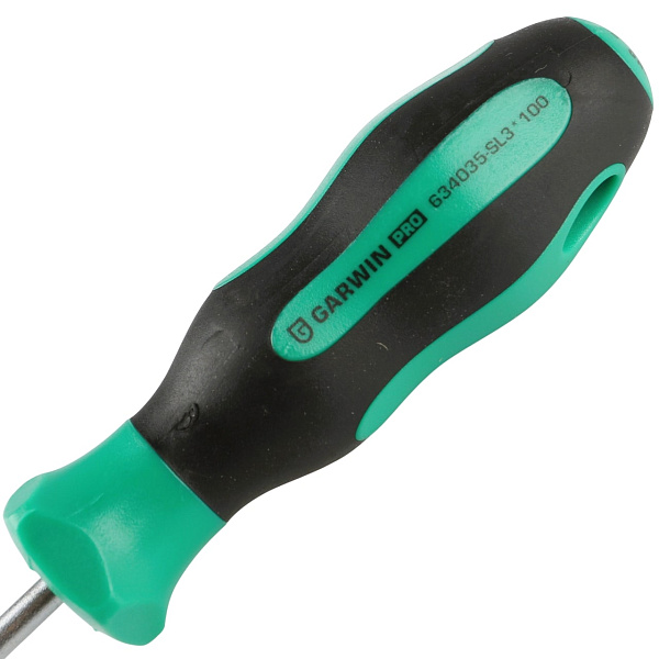 Отвертка профессиональная Garwin 634035-SL3*100. Длина жала - 100 мм, рабочий профиль - SL (шлиц).