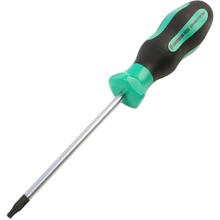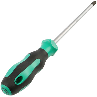 - Жало отвертки изготовлено из прочной инструментальной стали SVCM, устойчивой к динамическим нагрузкам. Высокоточная фрезеровка шлицев обеспечивает надежное сцепление с профилем крепежа, сводя к минимуму вероятность повреждения.