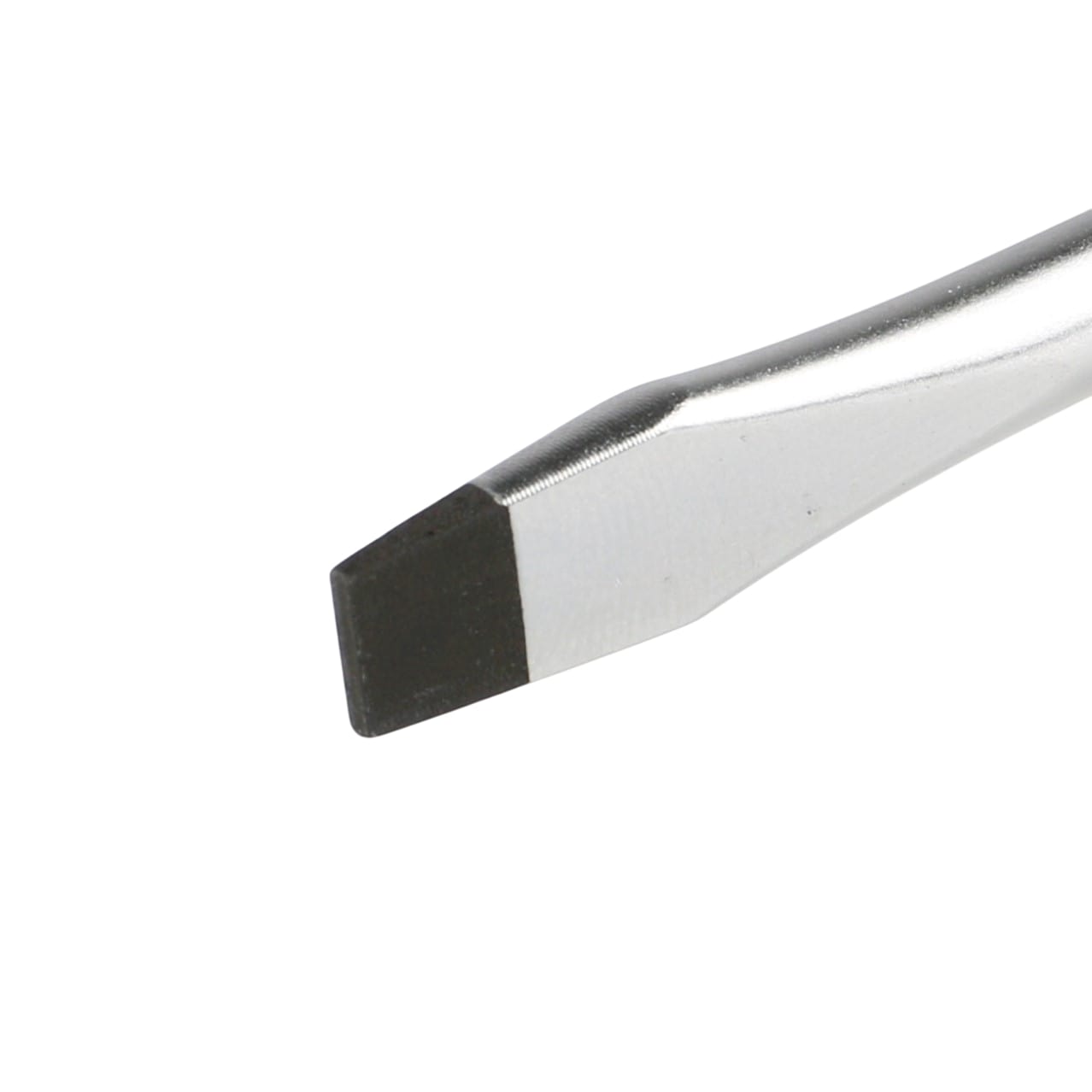 Жало отвертки изготовлено из прочной инструментальной стали SVCM, устойчивой к динамическим нагрузкам. Высокоточная фрезеровка шлицев обеспечивает надежное сцепление с профилем крепежа, сводя к минимуму вероятность повреждения.