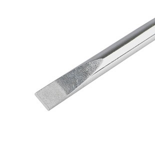 Жало отвертки изготовлено из прочной инструментальной стали SVCM, устойчивой к динамическим нагрузкам. Высокоточная фрезеровка шлицев обеспечивает надежное сцепление с профилем крепежа, сводя к минимуму вероятность повреждения.
