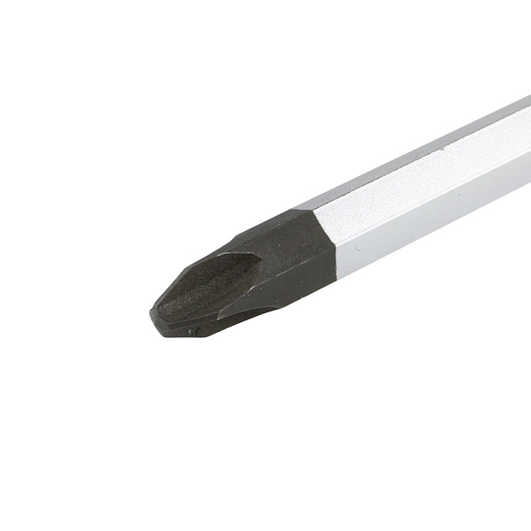 Жало отвертки изготовлено из прочной инструментальной стали SVCM, устойчивой к динамическим нагрузкам. Высокоточная фрезеровка шлицев обеспечивает надежное сцепление с профилем крепежа, сводя к минимуму вероятность повреждения.