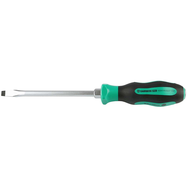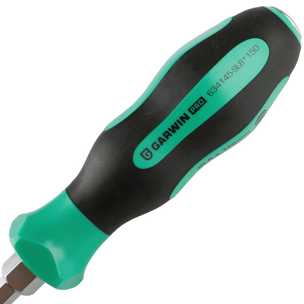 Отвертка усиленная цельнометаллическая Garwin 634145-SL8*150. Длина жала - 150 мм, рабочий профиль - SL (шлиц).