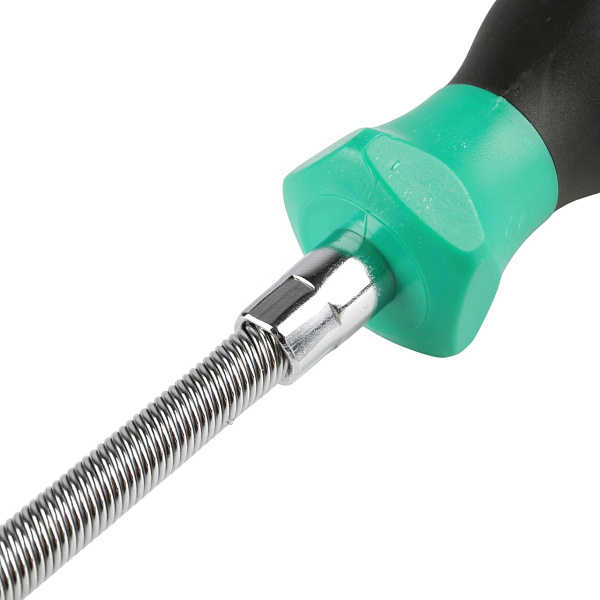 Гибкий шток отвертки изготовлен из прочной хром-ванадиевой стали.