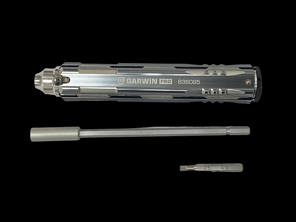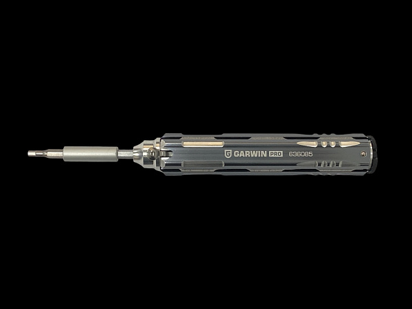 Корпус отвертки одновременно служит футляром-держателем для сменных жал, предохраняя их от потери или поломки.