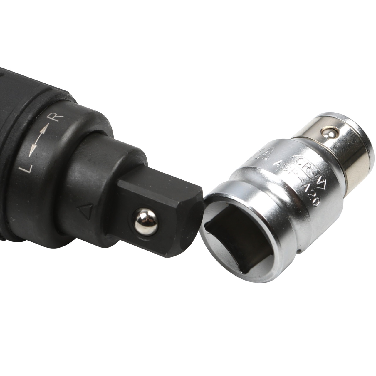 Металлическая рукоятка дает возможность использовать молоток для срыва крепежа. Поворотный механизм при ударе молотком придает бите вращение, что обеспечивает ударное усилие при срыве крепежа.