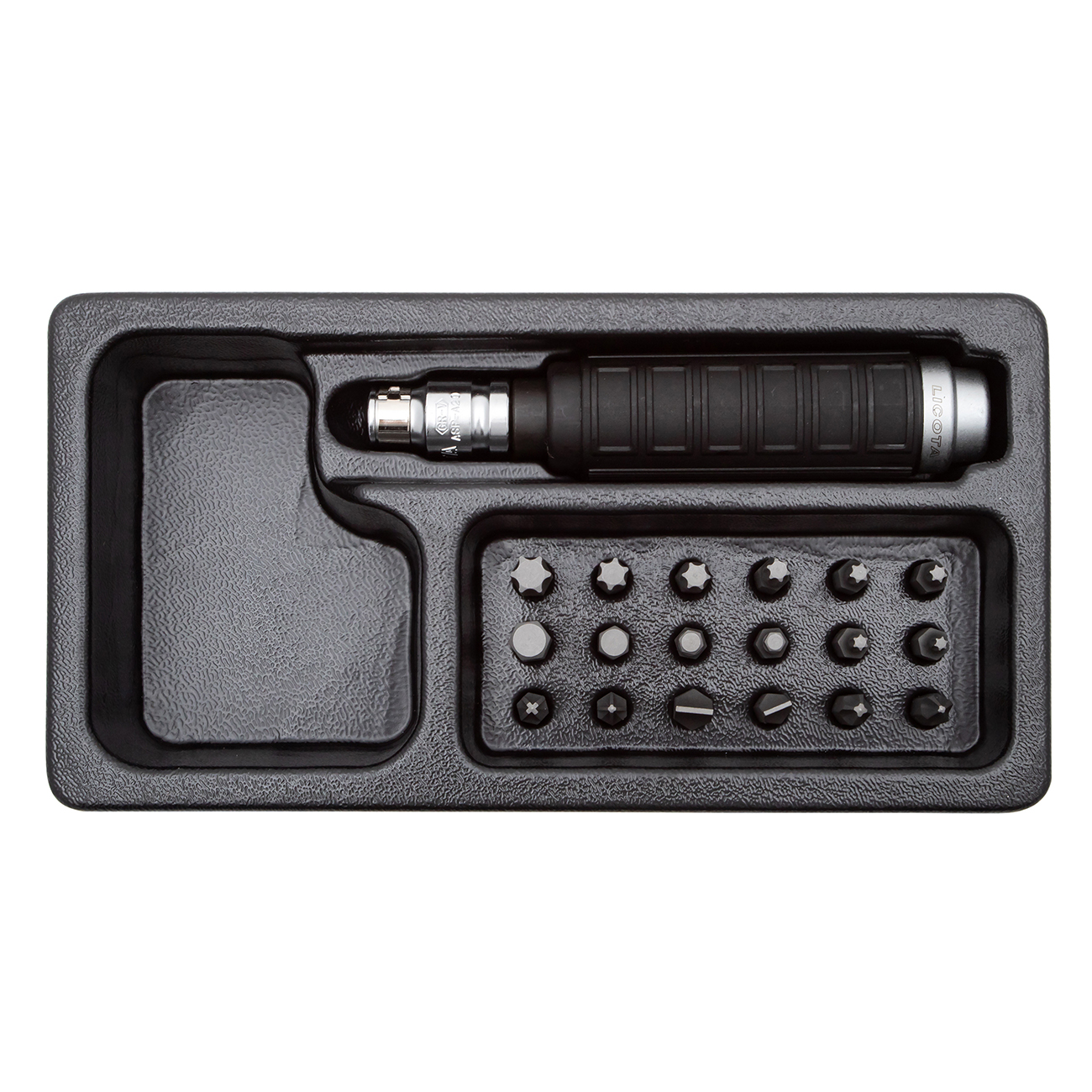 Пластиковый ложемент обеспечивает удобство хранения в инструментальной тележке или верстаке.