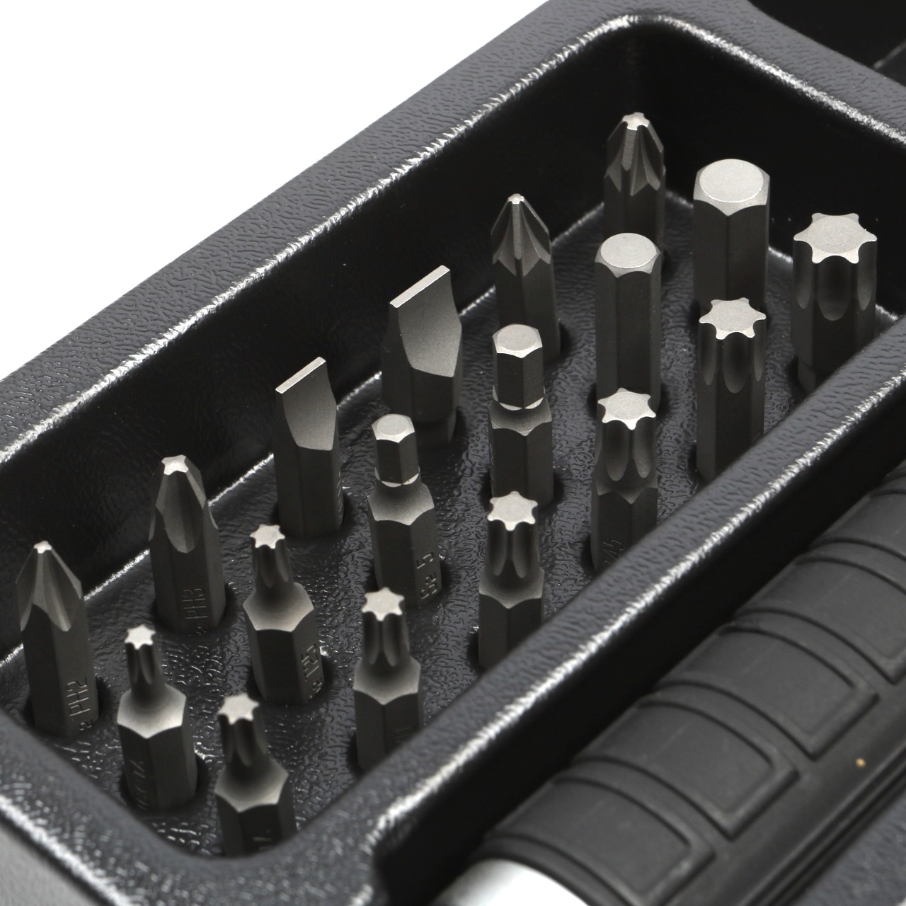 Биты изготовлены из прочной инструментальной стали S2, устойчивой к динамическим нагрузкам. Высокоточная фрезеровка шлицев обеспечивает надежное сцепление с профилем крепежа, сводя к минимуму вероятность повреждения.