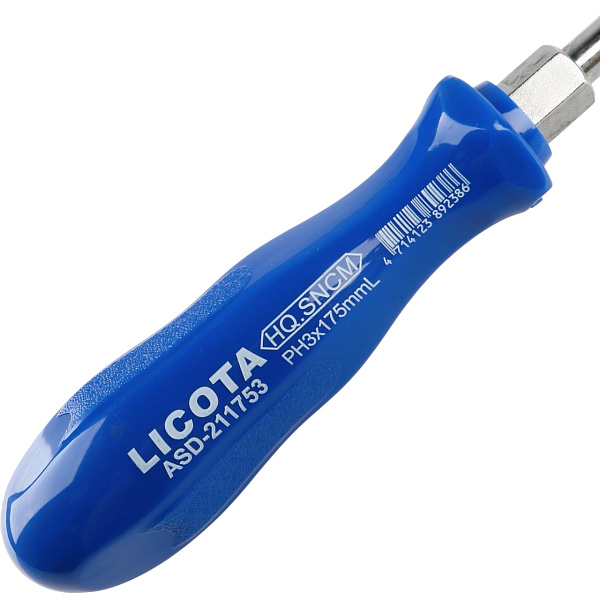 Отвертка с алмазным напылением усиленная Licota ASD-211753. Длина жала - 175 мм, рабочий профиль - PH (крест).