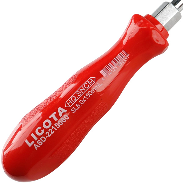 Отвертка с алмазным напылением усиленная Licota ASD-2215080. Длина жала - 150 мм, рабочий профиль - SL (шлиц).