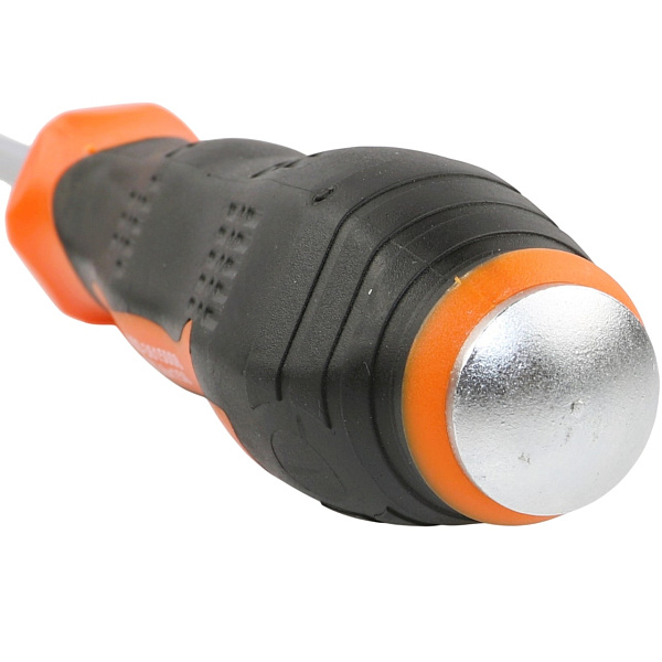 Жало отвертки изготовлено из прочной инструментальной стали SNCM, устойчивой к динамическим нагрузкам. Высокоточная фрезеровка шлицев обеспечивает надежное сцепление с профилем крепежа, сводя к минимуму вероятность повреждения.
