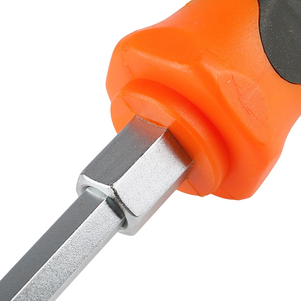 Усиленная конструкция с шестигранным профилем жала и приводом под ключ у его основания позволяет прикладывать дополнительное усилие при закручивании-откручивании крепежа.