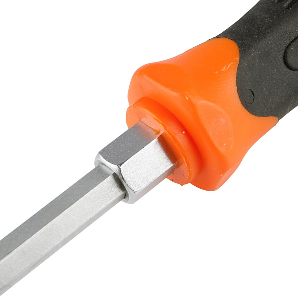 Усиленная конструкция с шестигранным профилем жала и приводом под ключ у его основания позволяет прикладывать дополнительное усилие при закручивании-откручивании крепежа.