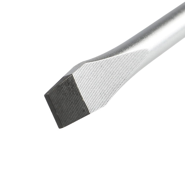 Жало отвертки изготовлено из прочной инструментальной стали S2, устойчивой к динамическим нагрузкам. Высокоточная фрезеровка шлицев обеспечивает надежное сцепление с профилем крепежа, сводя к минимуму вероятность повреждения.