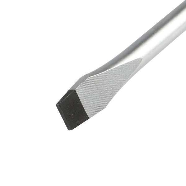Жало отвертки изготовлено из прочной инструментальной стали S2, устойчивой к динамическим нагрузкам. Высокоточная фрезеровка шлицев обеспечивает надежное сцепление с профилем крепежа, сводя к минимуму вероятность повреждения.