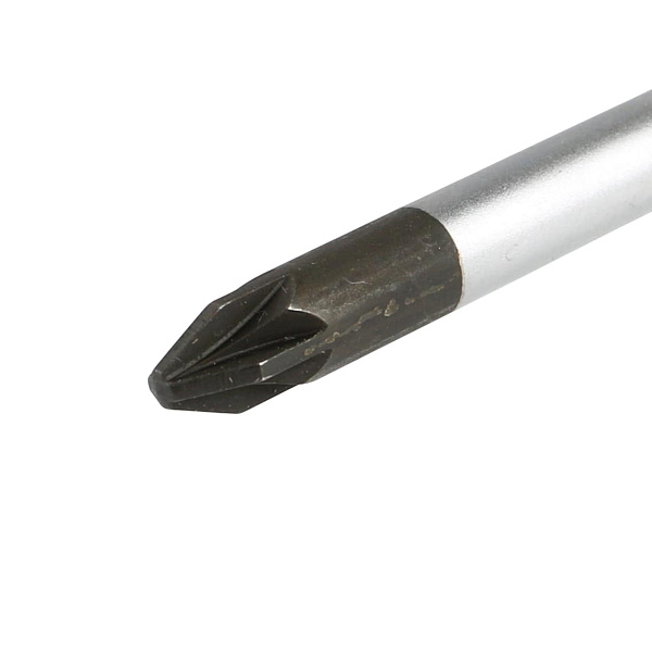 Жало отвертки изготовлено из прочной инструментальной стали S2, устойчивой к динамическим нагрузкам. Высокоточная фрезеровка шлицев обеспечивает надежное сцепление с профилем крепежа, сводя к минимуму вероятность повреждения. Рабочий профиль PZ с четырьмя дополнительными гранями позволяет усилить затяжку саморезов и шурупов без “слизывания” головки.