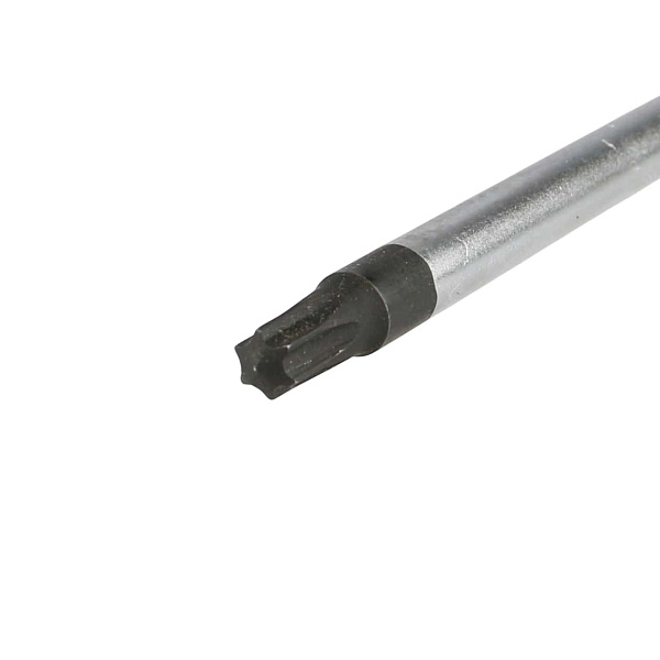 Жало отвертки изготовлено из прочной инструментальной стали S2, устойчивой к динамическим нагрузкам. Высокоточная фрезеровка шлицев обеспечивает надежное сцепление с профилем крепежа, сводя к минимуму вероятность повреждения. Рабочий профиль Torx позволяет усилить затяжку крепежа без “слизывания” головки.
