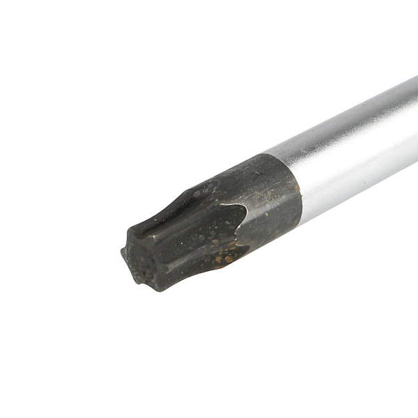 Жало отвертки изготовлено из прочной инструментальной стали S2, устойчивой к динамическим нагрузкам. Высокоточная фрезеровка шлицев обеспечивает надежное сцепление с профилем крепежа, сводя к минимуму вероятность повреждения. Рабочий профиль Torx позволяет усилить затяжку крепежа без “слизывания” головки.