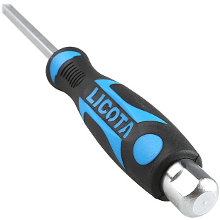 Жало отвертки изготовлено из прочной инструментальной стали SNCM, устойчивой к динамическим нагрузкам. Высокоточная фрезеровка шлицев обеспечивает надежное сцепление с профилем крепежа, сводя к минимуму вероятность повреждения.