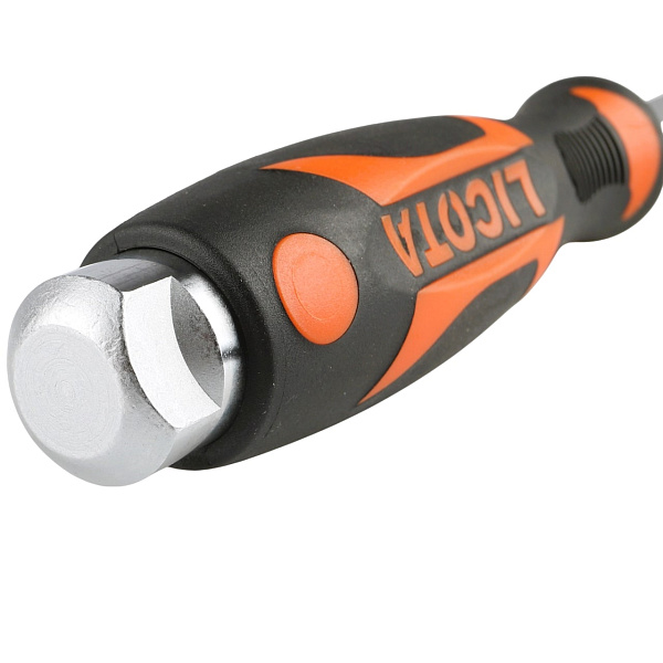 Жало отвертки изготовлено из прочной инструментальной стали SNCM, устойчивой к динамическим нагрузкам. Высокоточная фрезеровка шлицев обеспечивает надежное сцепление с профилем крепежа, сводя к минимуму вероятность повреждения.