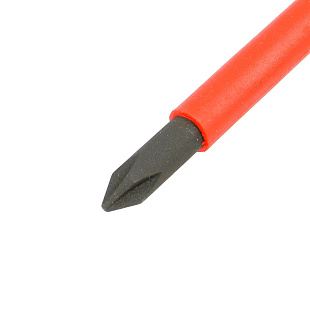 Шток отвертки защищен изолирующим покрытием. Допускается для производства слесарно-монтажных работ в электроустановках до 1000 В. Изоляция диэлектрического инструмента проверена согласно DIN 7437 в специальной среде (электролит) при напряжении в 10 000 В.