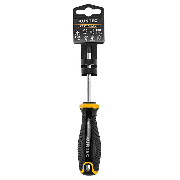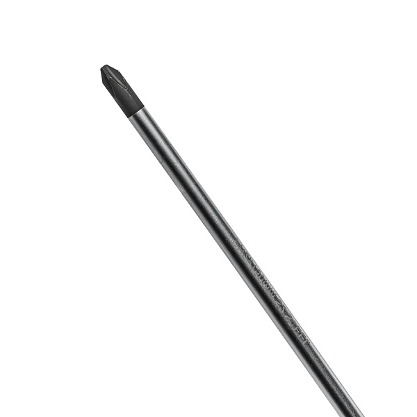 Хромированный стержень из инструментальной стали S2, закаленной до 57-61 HRC, обеспечивает износостойкость инструмента даже при интенсивном использовании. Фосфатирование наконечника повышает сцепление с шлицем крепежа и устойчивость к коррозии. Также наконечник намагничен для дополнительного удержания крепежа.