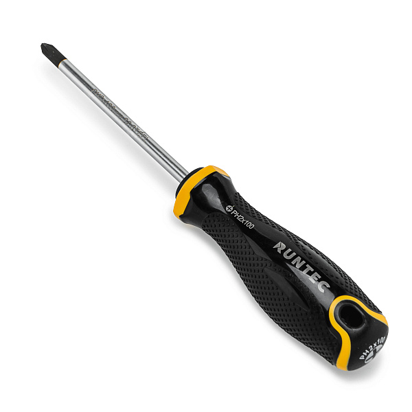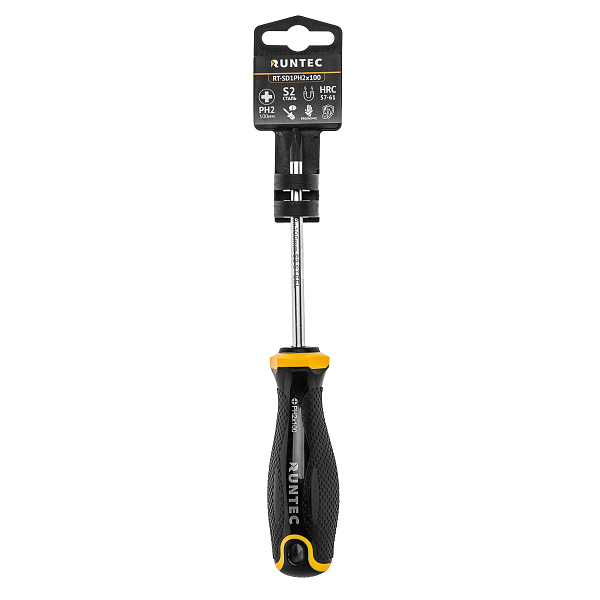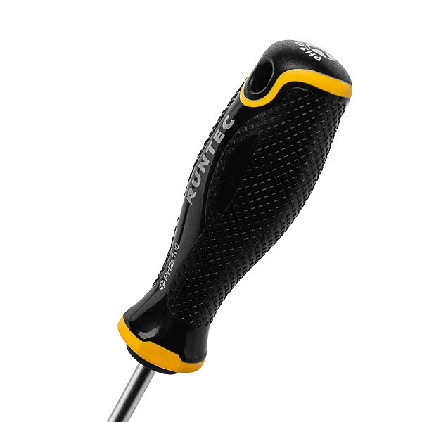 Хромированный стержень из инструментальной стали S2, закаленной до 57-61 HRC, обеспечивает износостойкость инструмента даже при интенсивном использовании. Фосфатирование наконечника повышает сцепление с шлицем крепежа и устойчивость к коррозии. Также наконечник намагничен для дополнительного удержания крепежа.