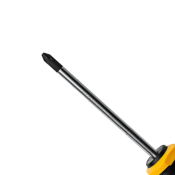 Хромированный стержень из инструментальной стали S2, закаленной до 57-61 HRC, обеспечивает износостойкость инструмента даже при интенсивном использовании. Фосфатирование наконечника повышает сцепление с шлицем крепежа и устойчивость к коррозии. Также наконечник намагничен для дополнительного удержания крепежа.