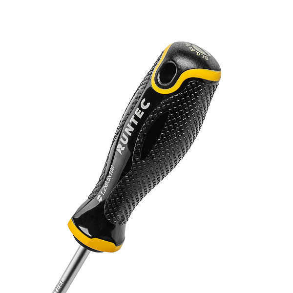 Хромированный стержень из инструментальной стали S2, закаленной до 57-61 HRC, обеспечивает износостойкость инструмента даже при интенсивном использовании. Фосфатирование наконечника повышает сцепление с шлицем крепежа и устойчивость к коррозии. Также наконечник намагничен для дополнительного удержания крепежа.