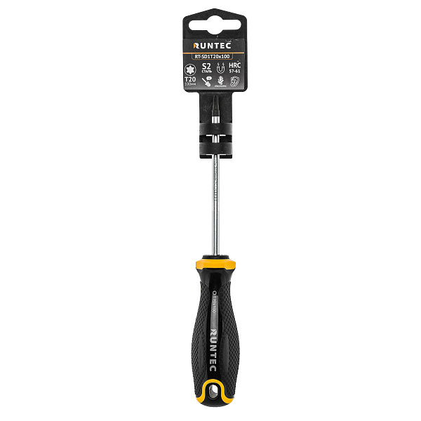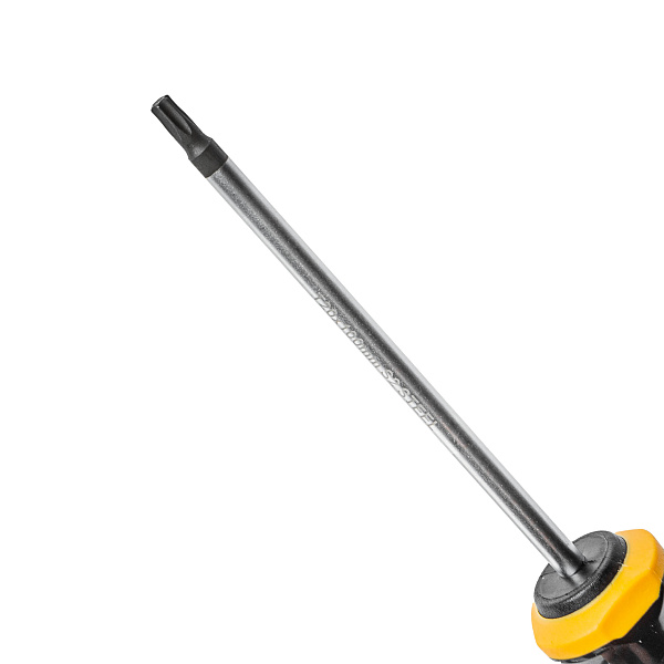 Хромированный стержень из инструментальной стали S2, закаленной до 57-61 HRC, обеспечивает износостойкость инструмента даже при интенсивном использовании. Фосфатирование наконечника повышает сцепление с шлицем крепежа и устойчивость к коррозии. Также наконечник намагничен для дополнительного удержания крепежа.