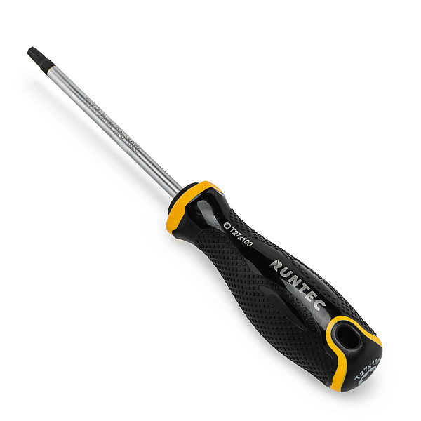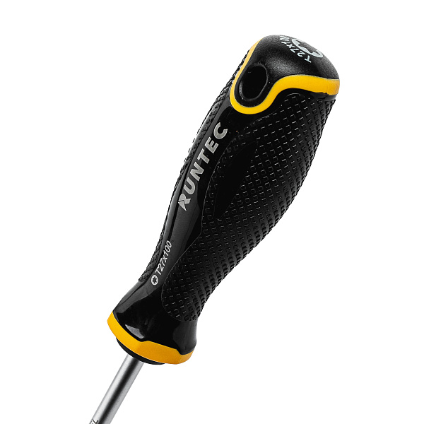 Хромированный стержень из инструментальной стали S2, закаленной до 57-61 HRC, обеспечивает износостойкость инструмента даже при интенсивном использовании. Фосфатирование наконечника повышает сцепление с шлицем крепежа и устойчивость к коррозии. Также наконечник намагничен для дополнительного удержания крепежа.