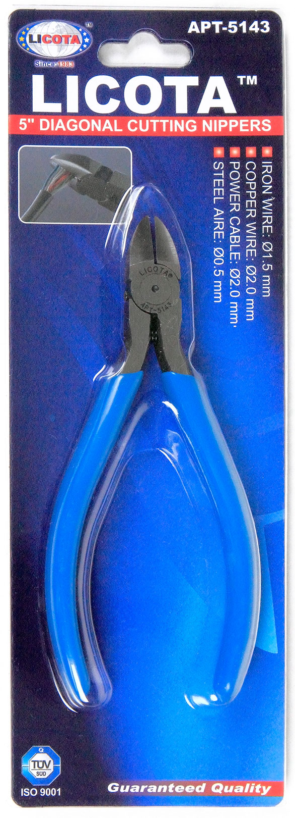 Бокорезы диагональные мини Licota APT-5143 - шарнирно-губцевый инструмент, предназначенный для перекусывания проволоки, кабеля, проводов, крепежа малых диаметров, резки листов металла небольшой толщины.