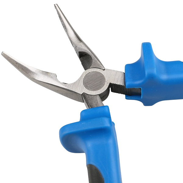 Изогнутые губки инструмента позволяют удерживать детали, доступ к которым прямыми длинногубцами затруднен.
