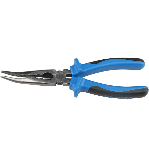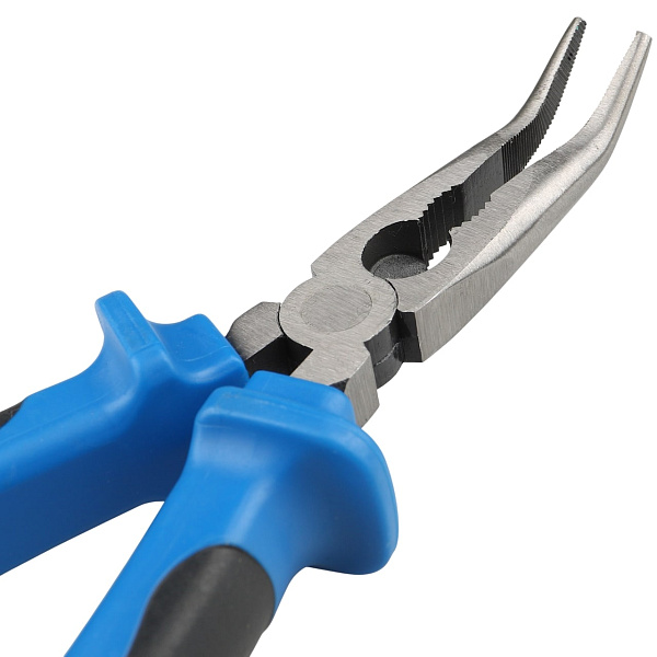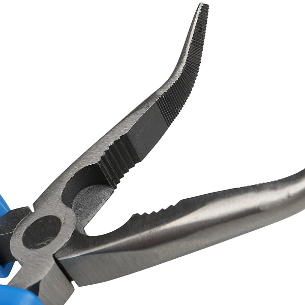 Изогнутые губки инструмента позволяют удерживать детали, доступ к которым прямыми длинногубцами затруднен.