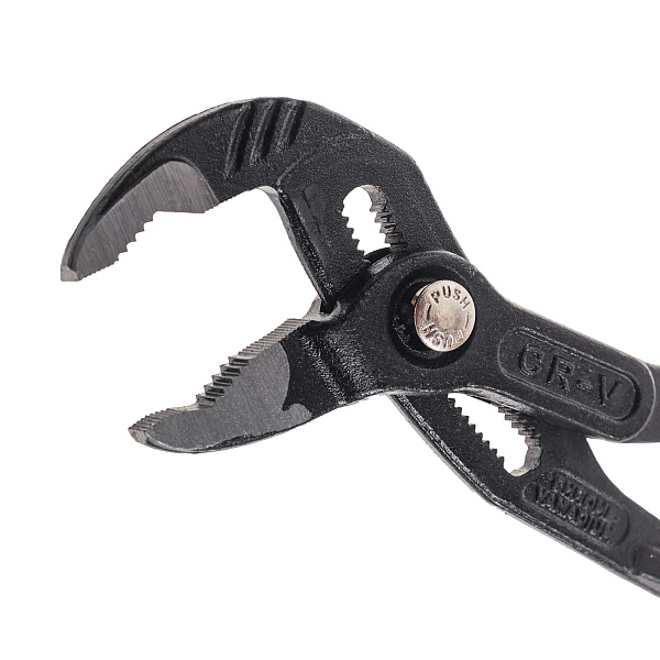 Кнопочный механизм быстро и надежно фиксирует положение губок и исключает случайное проскальзывание шарнира.