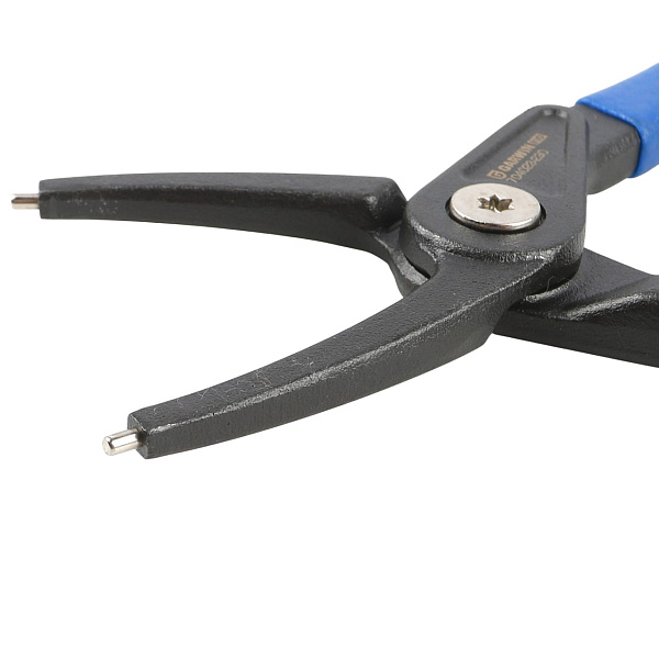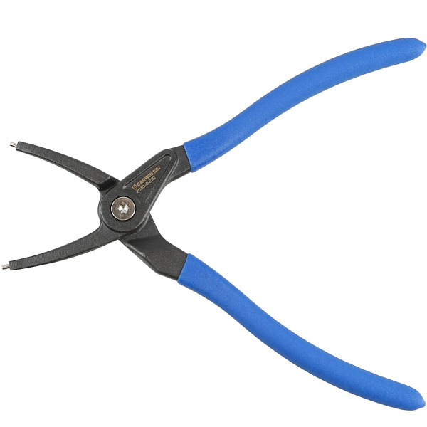 Съемник внешних стопорных колец усиленный, прямой Garwin 704023 из хром-ванадиевой стали и ручками из эргономичного нескользящего полимера. Наконечники - высокопрочная подшипниковая сталь. Съемник работает на разжатие. Длина инструмента - 230 мм.