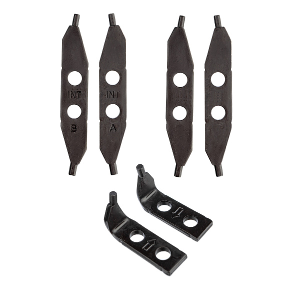 - пара двусторонних прямых сменных губок с наконечниками 2,8 мм, наконечники с одной стороной устанавливаются для работы с внутренними кольцами, другой для работы с внешними.- пара двусторонних прямых сменных губок с наконечниками 3,2 мм, наконечники с одной стороной устанавливаются для работы с внутренними кольцами, другой для работы с внешними.