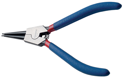 Съемник внешних стопорных колец, прямой APT-38003A из хром-ванадиевой стали и ручками из эргономичного нескользящего полимера. Съемник работает на разжатие. Длина инструмента - 140 мм.