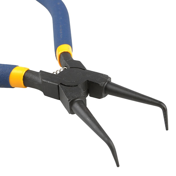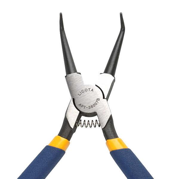 Съемник стопорных колец загнутый “японского типа”, Licota APT-38007B из хром-ванадиевой стали с ручками из эргономичного нескользящего полимера. Съемник работает на сжим. Длина инструмента - 175 мм.