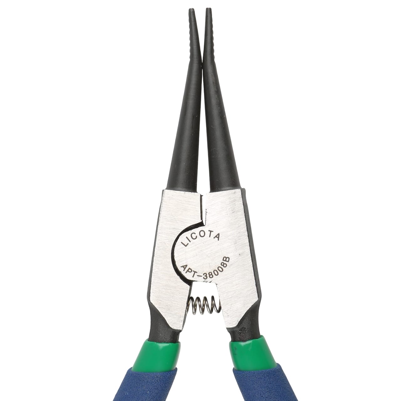 Съемник стопорных колец прямой “японского типа”, Licota APT-38008B из хром-ванадиевой стали с ручками из эргономичного нескользящего полимера. Съемник работает на разжатие. Длина инструмента - 175 мм.