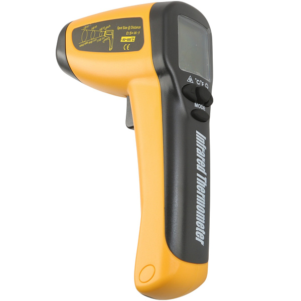 - Инфракрасный термометр позволяет измерять температуру объекта находясь на безопасном расстоянии от него.
