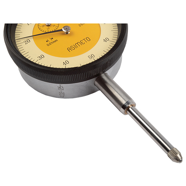 Индикатор часового типа (ИЧ) многооборотный Asimeto 402-25-0 предназначен для измерения линейных размеров абсолютным и относительным методами, определения величины отклонений от заданной геометрической формы и взаимного расположения поверхностей.
