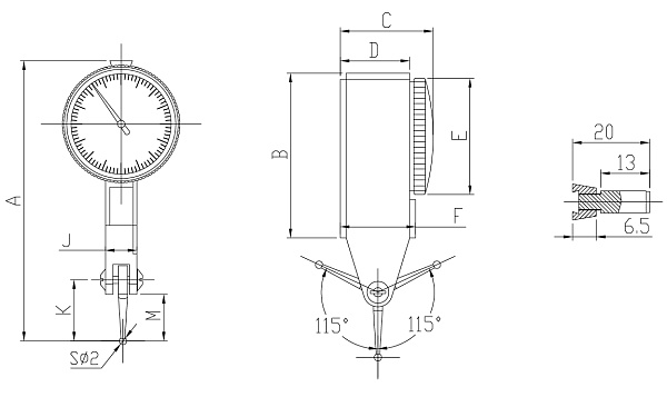 Данный тип индикатора оснащен шкалой, размещенной перпендикулярно оси измерительного рычага в среднем положении.