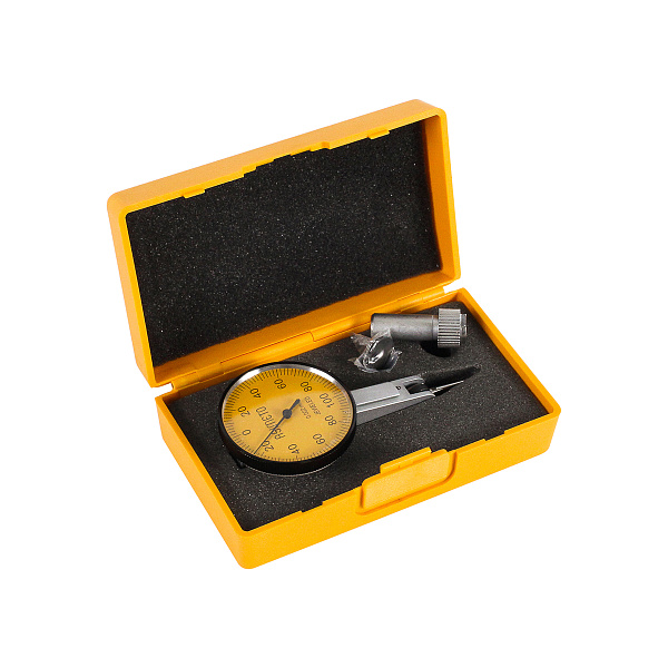 Данный тип индикатора рычажного типа оснащен шкалой, размещенной перпендикулярно оси измерительного рычага в среднем положении.